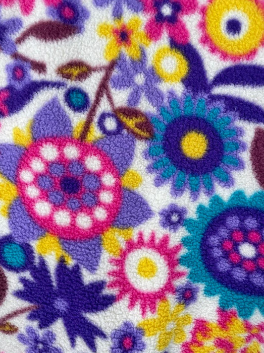 12 mo, Patagonia, Purple, Hooded floral fleece bunting, zips on legs, side, & front