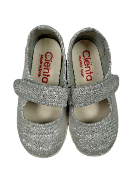 size 6.5, Cienta, Silver, Sparkly mary jane sneakers, velcro strap