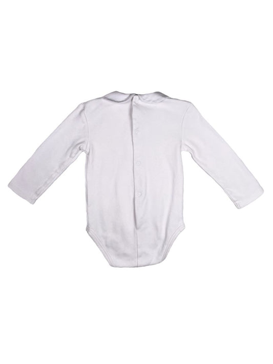 12 mo, Mayoral, White, Flower scallop collar long-sleeve bodysuit