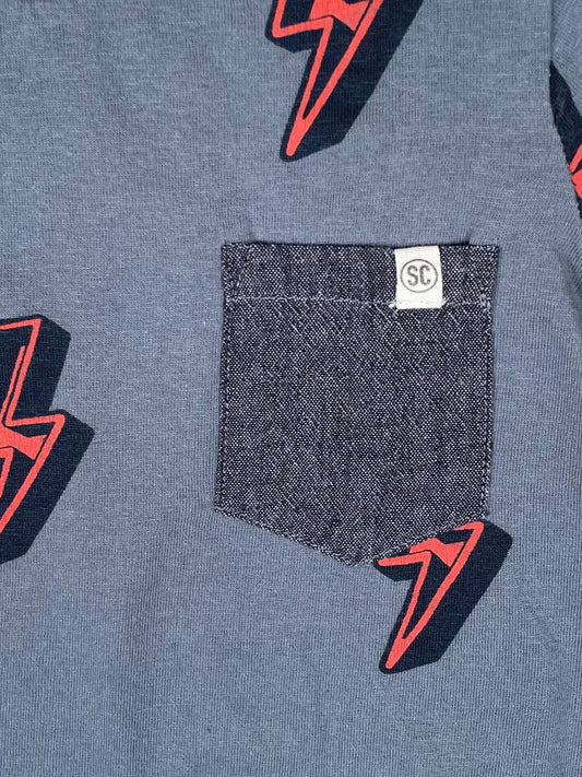 18 mo, Sovereign Code, Blue, Red lightning bolt t-shirt with pocket
