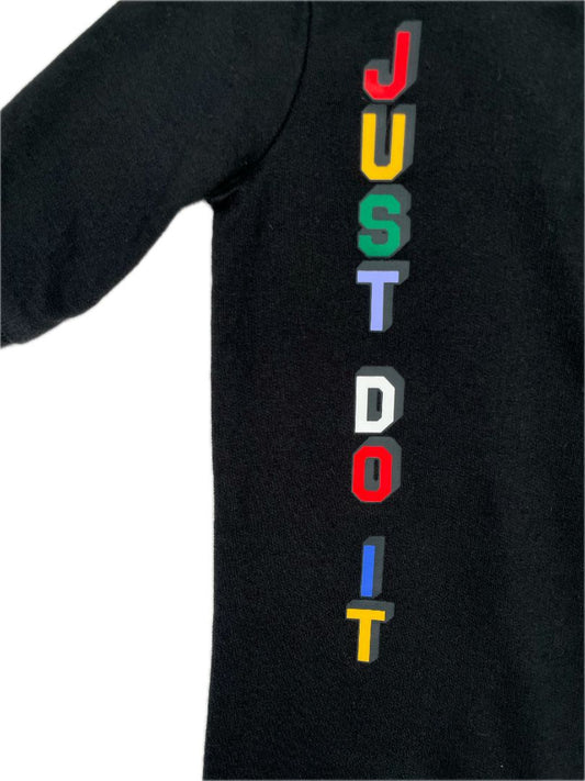 3 mo, Nike, Black, 'Just Do It' long-sleeve coverall, embroidered logo