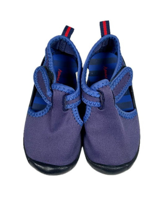 6 mo, Hanna Andersson, Blue, Water shoes, velcro strap, red stripe on back