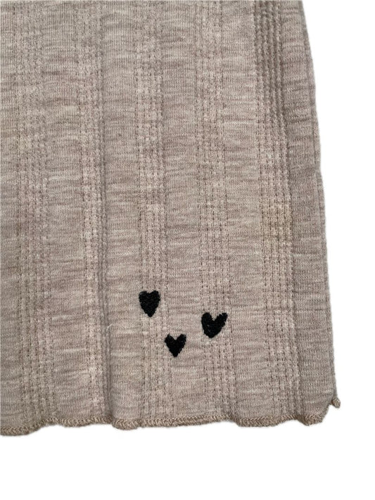 12-18 mo, Zara, Neutral, Textured long-sleeve shirt w/ ruffle edges & black embroidered hearts