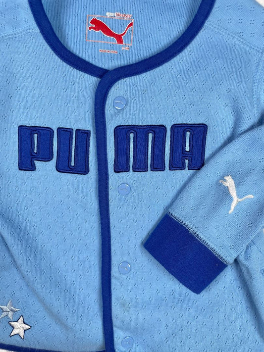 3-6 mo, PUMA, Blue, Pointelle snap-up cardigan, blue piping, embroidered logo & stars