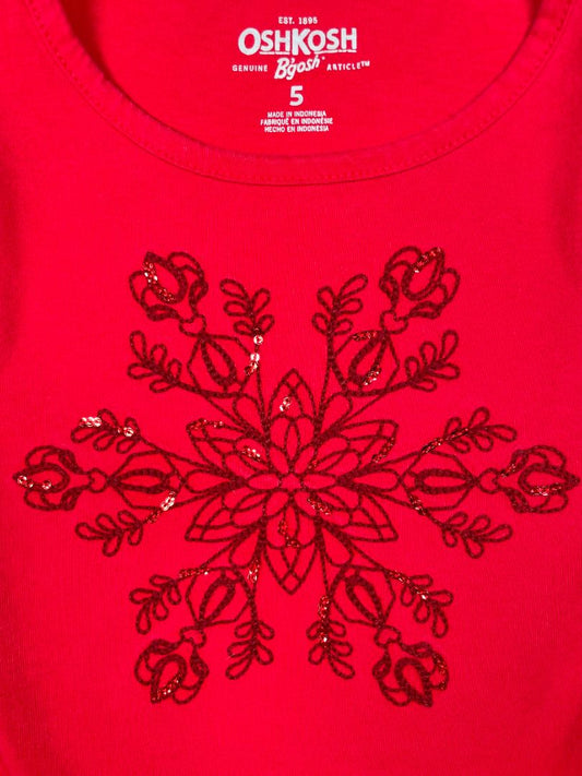 5/5T, OshKosh B'Gosh, Red, Long-sleeve shirt w/ embroidered snowflake, red sequins