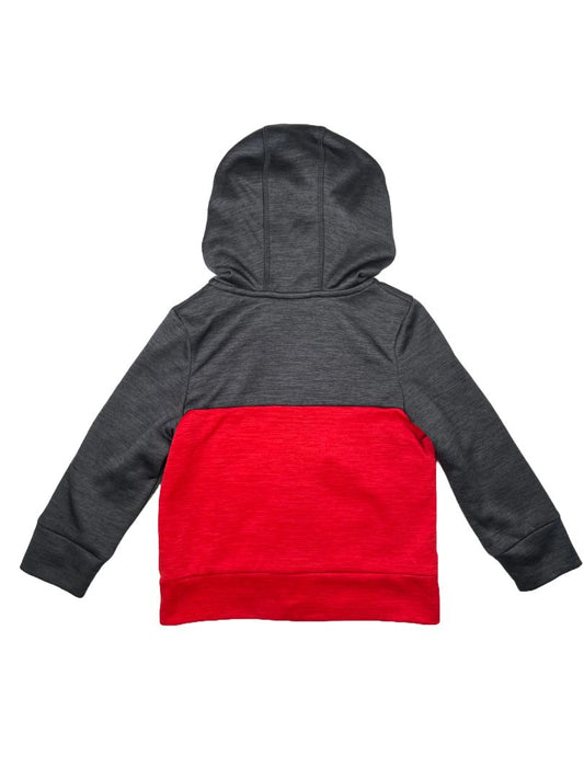 2/2T, Adidas, Black, Zip-up hoodie, red color block + white stripes, fleece-lined