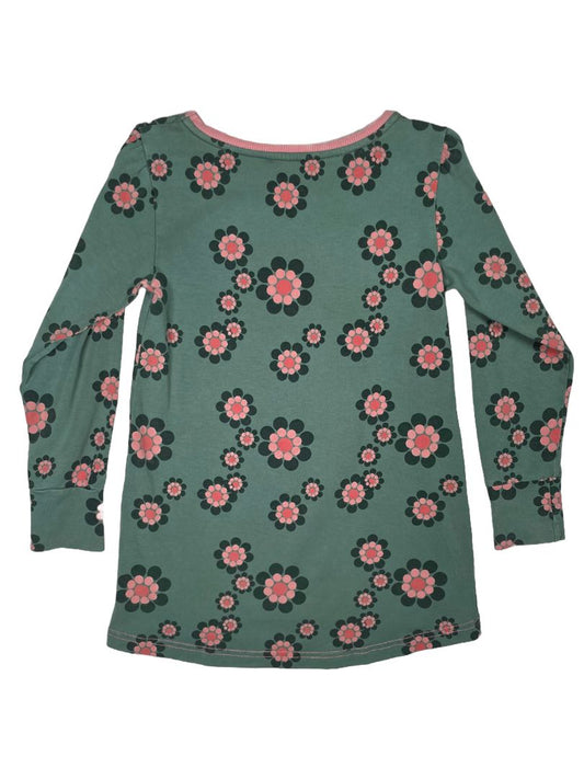 3-4, Alba of Denmark, Green, Long-sleeve dress, pink circle flowers, cotton + stretch