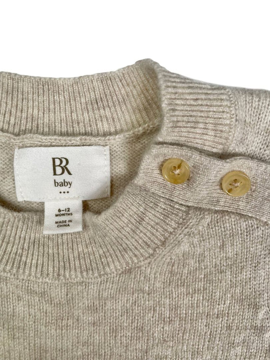 6-12 mo, BR Baby (Banana Republic), Neutral, Long-sleeve merino wool + cashmere sweater dress, buttons at shoulder