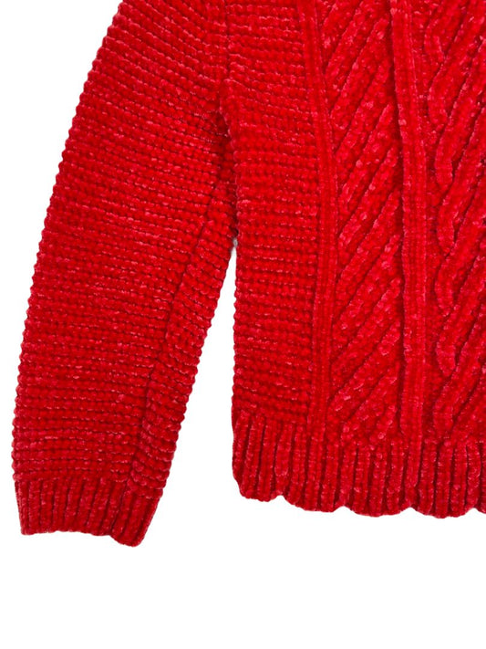 3/3T, Tommy Bahama, Red, Cable knit chenille sweater, scallop hem