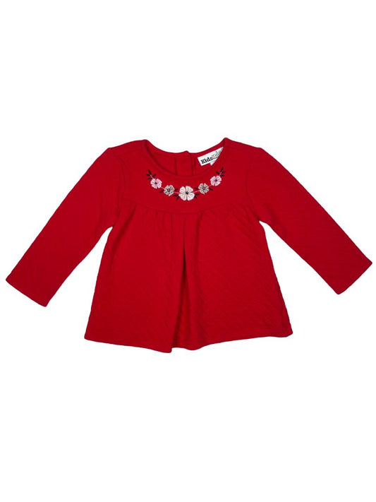 3/3T, Kids Headquarters, Red, Long-sleeve quilted shirt, embroidered flowers at yoke