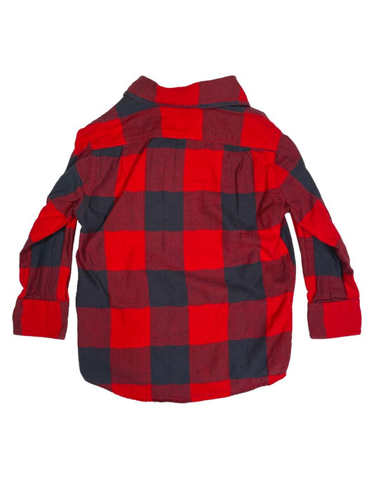 3/3T, J.Crew Crewcuts, Red, Gingham lightweight flannel long-sleeve button-up shirt, red/black
