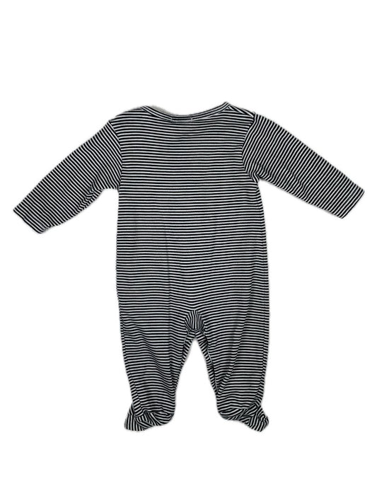 3-6 mo, Kissy Kissy, White, Super soft pima cotton bluish-black striped snap-up footed coverall