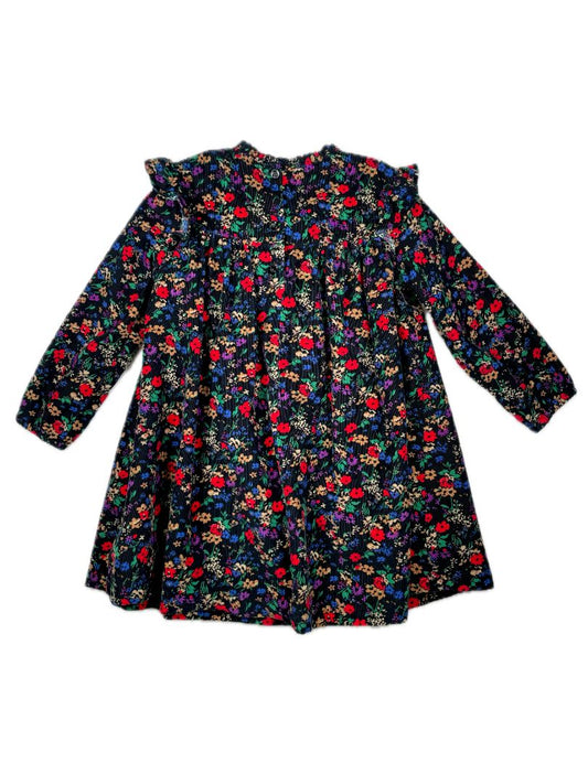 4/4T babyGap, Multi, Long-sleeve corduroy floral dress dark with shoulder ruffles