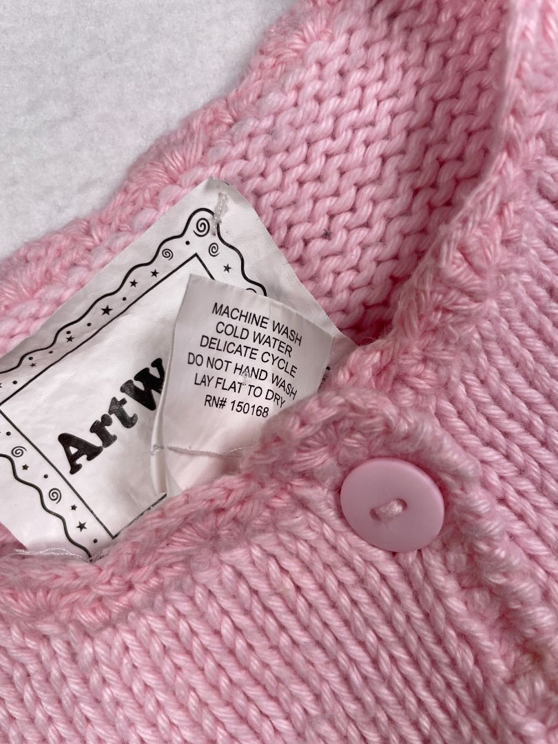 12 mo, Art Walk, Pink, Butterflies cotton button-up sweater, appliqué flowers