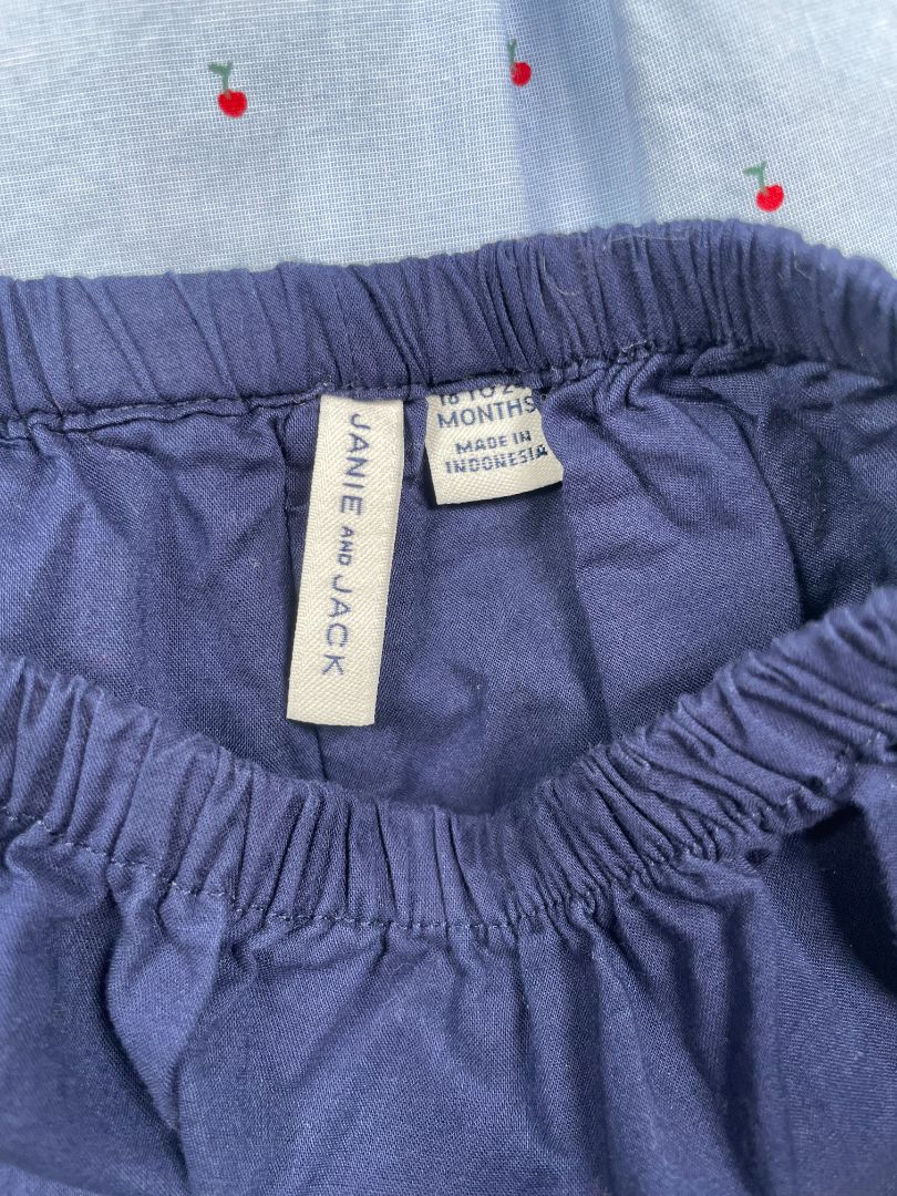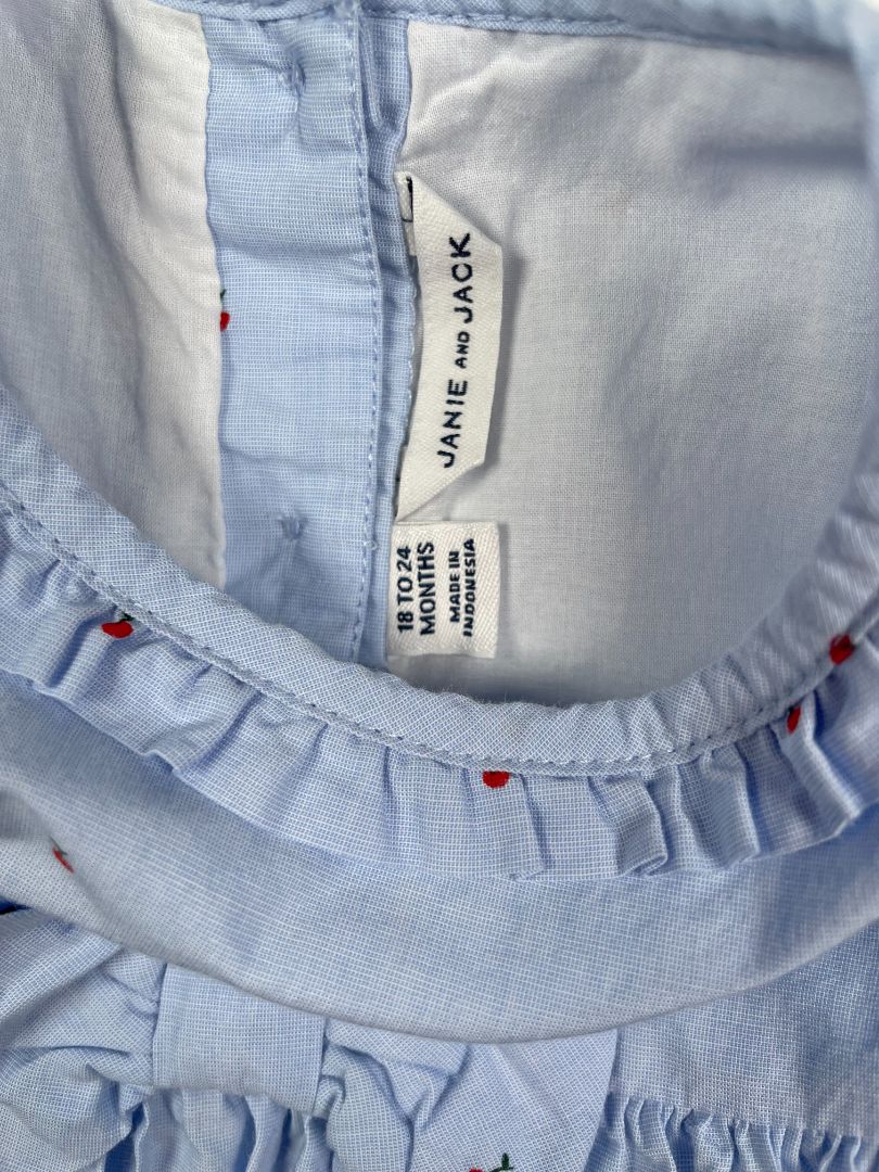 18-24 mo, Janie and Jack, Blue, Short-sleeve cherry dress w/ striped hem, bow + bloomers SET