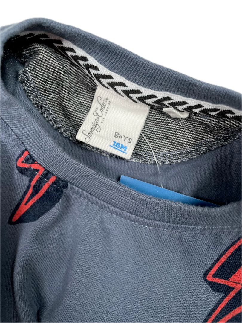 18 mo, Sovereign Code, Blue, Red lightning bolt t-shirt with pocket