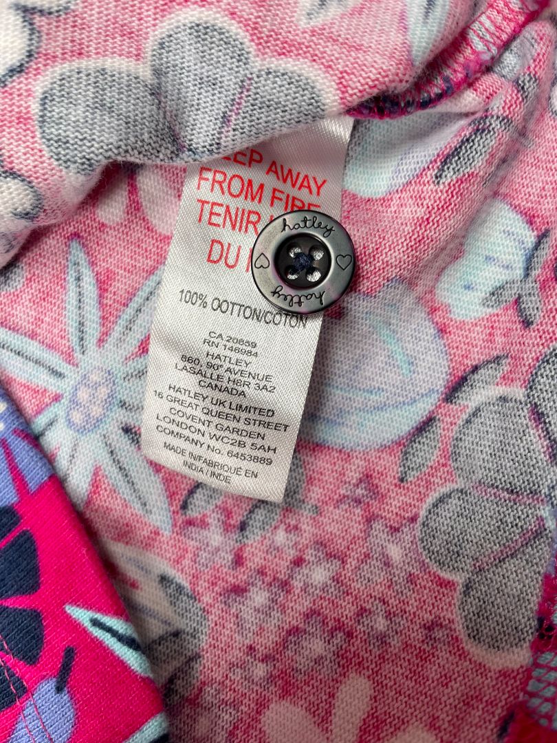 2/2T, Hatley, Pink, Blue/white floral long-sleeve dress, navy button collar, front pockets