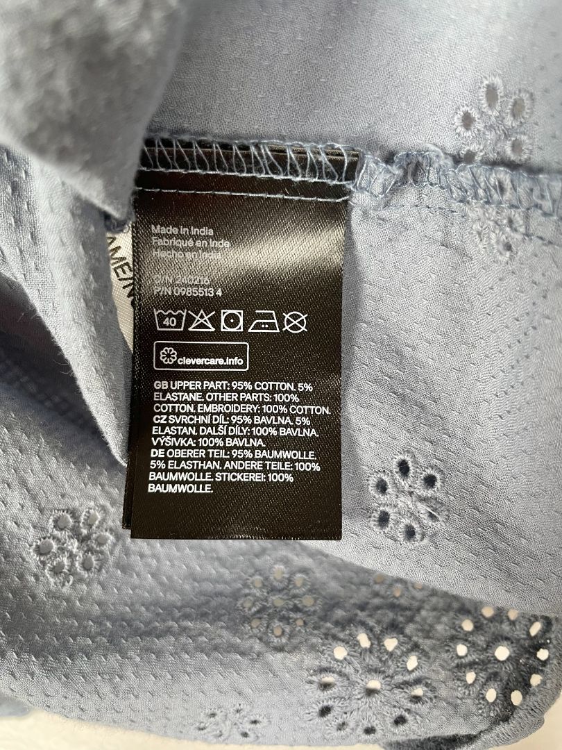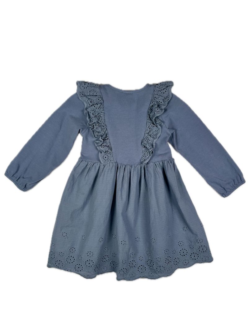 2/2T H&M, Blue, Long-sleeve dress, flower eyelet trim, ruffles at chest