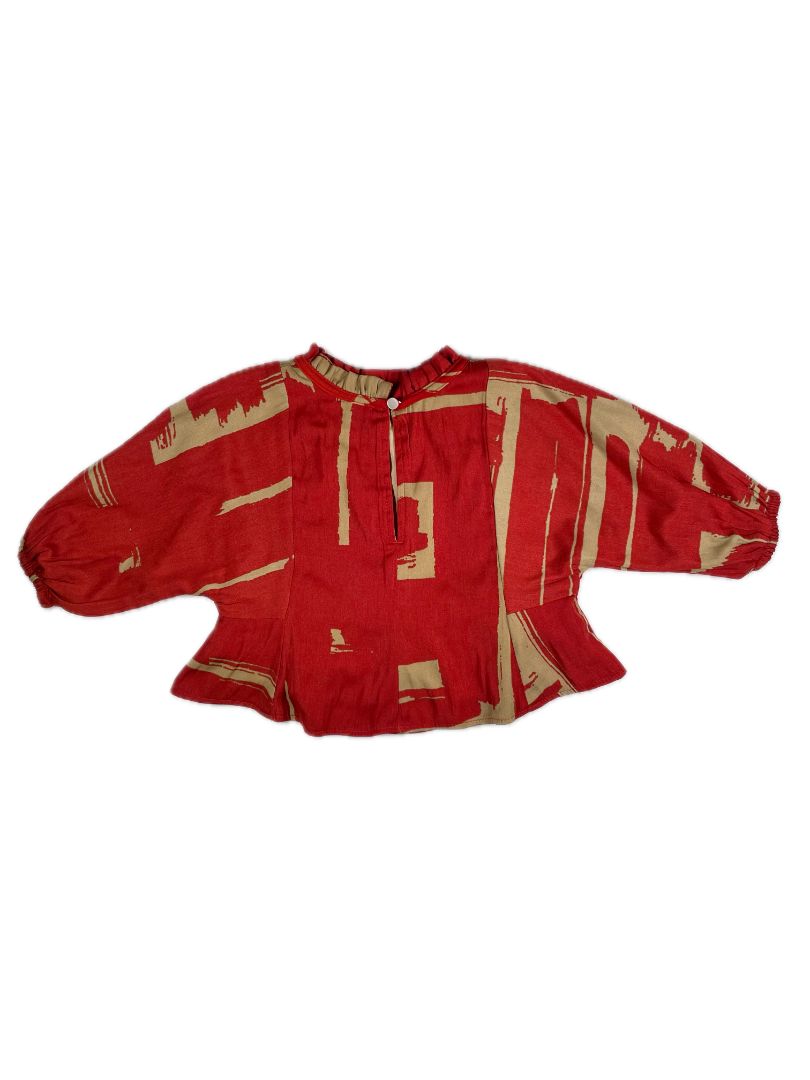 3-6 mo BR Baby (Banana Republic), Red, Blouse style top/dress, tan pattern