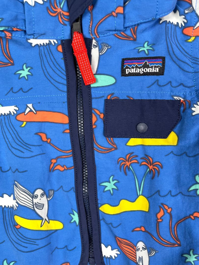 3-6 mo, Patagonia, Blue, Surfing fish zip-up lightweight jacket, removable hood