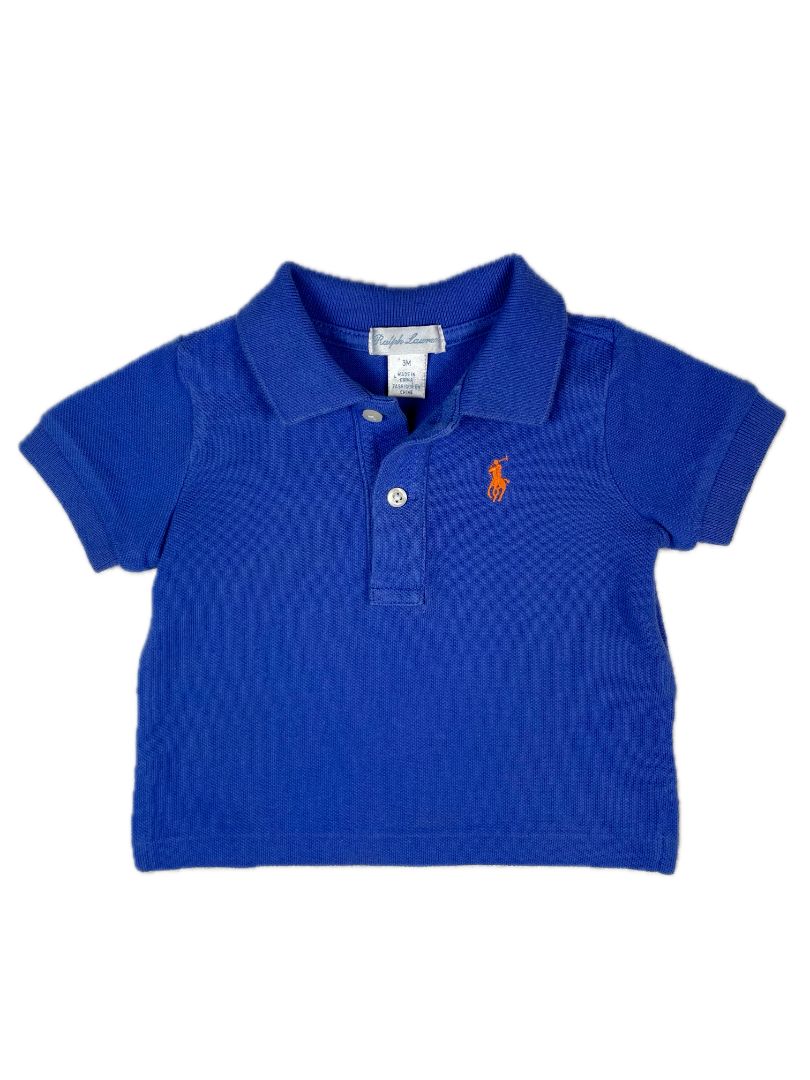 3 mo, Ralph Lauren, Blue, Short-sleeve polo shirt, orange emblem