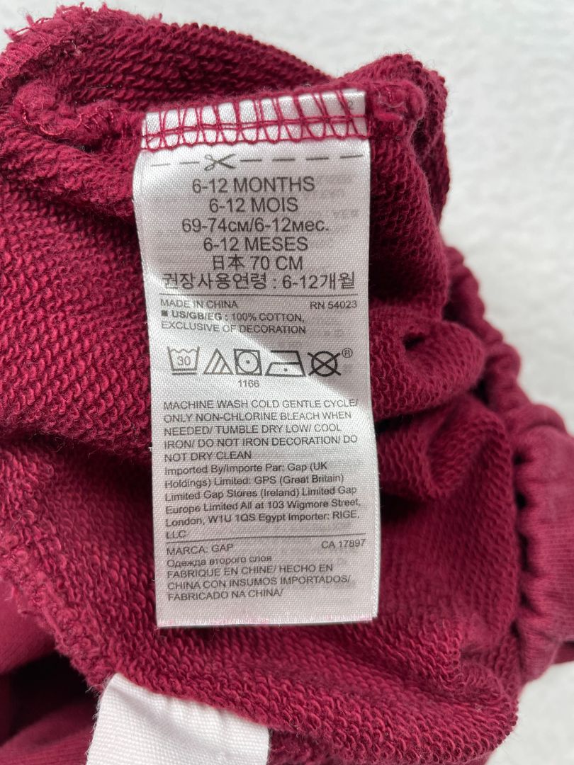 6-12 mo, babyGap, Purple, Bear pouch pull-on pants, decorative tie