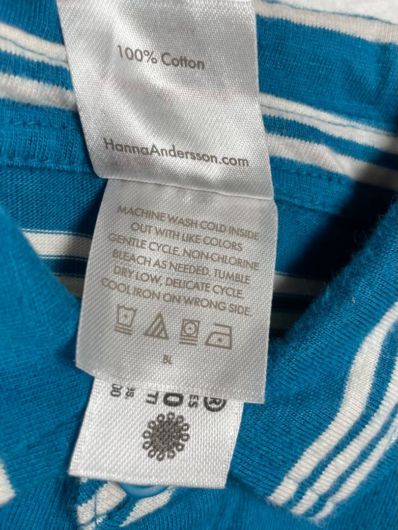 6-12 mo, Hanna Andersson, Blue, Short-sleeve collared romper, white-striped