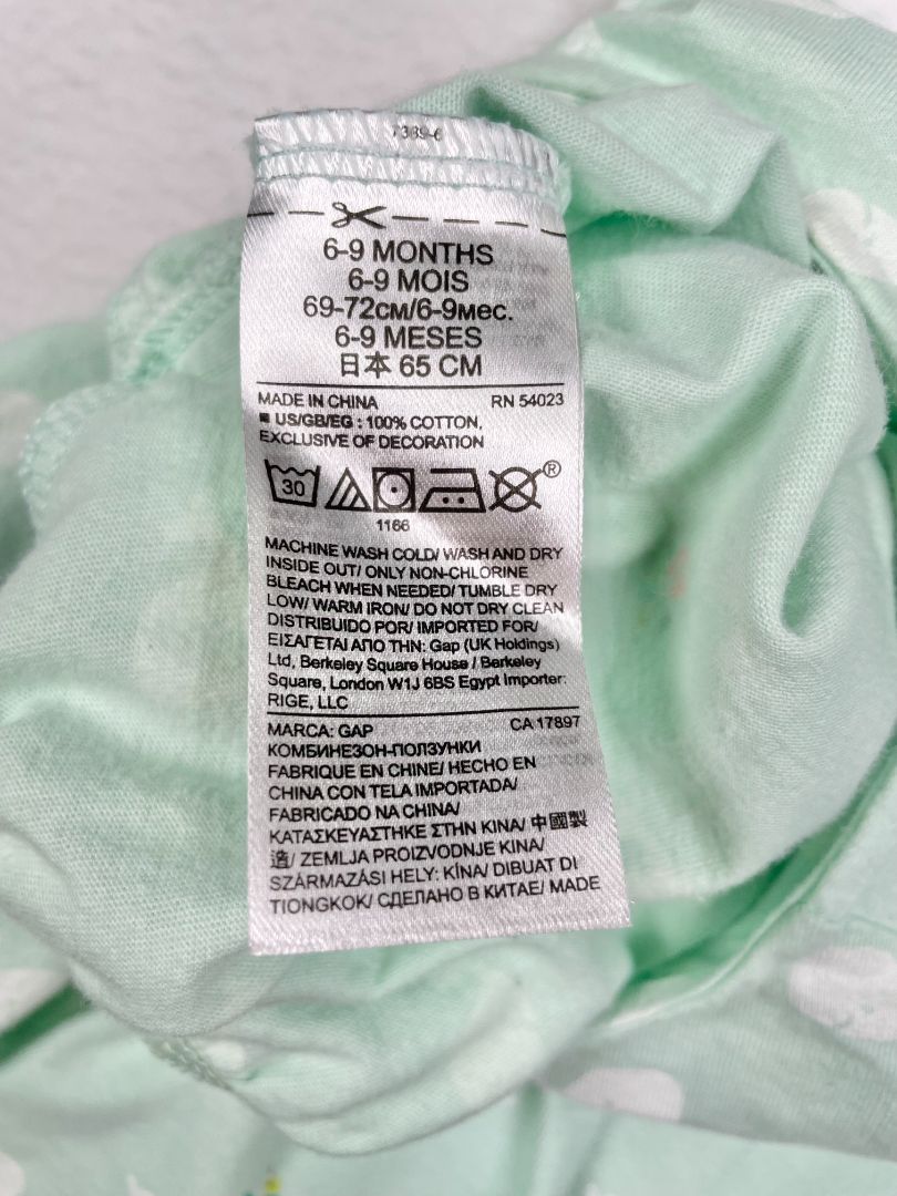 6-9 mo, babyGap, Green, Whale & flower print long-sleeve one-piece, snap legs