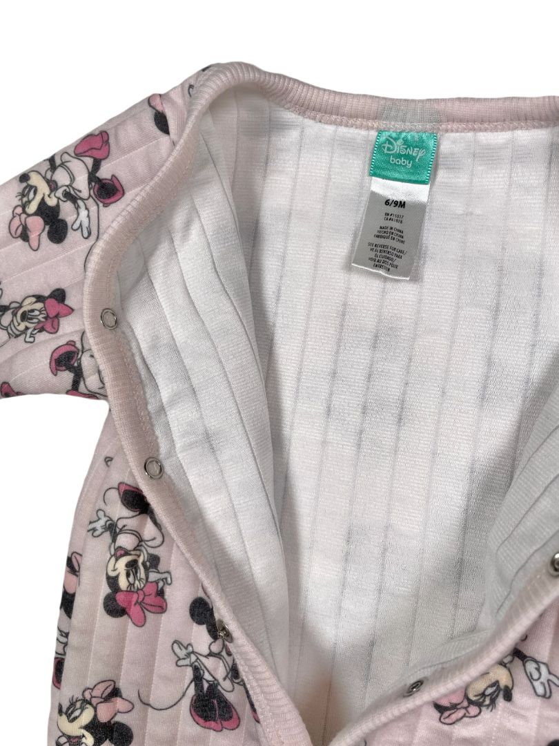 6-9 mo, Disney, Pink, Minnie Mouse quilted footed coverall, snap closure